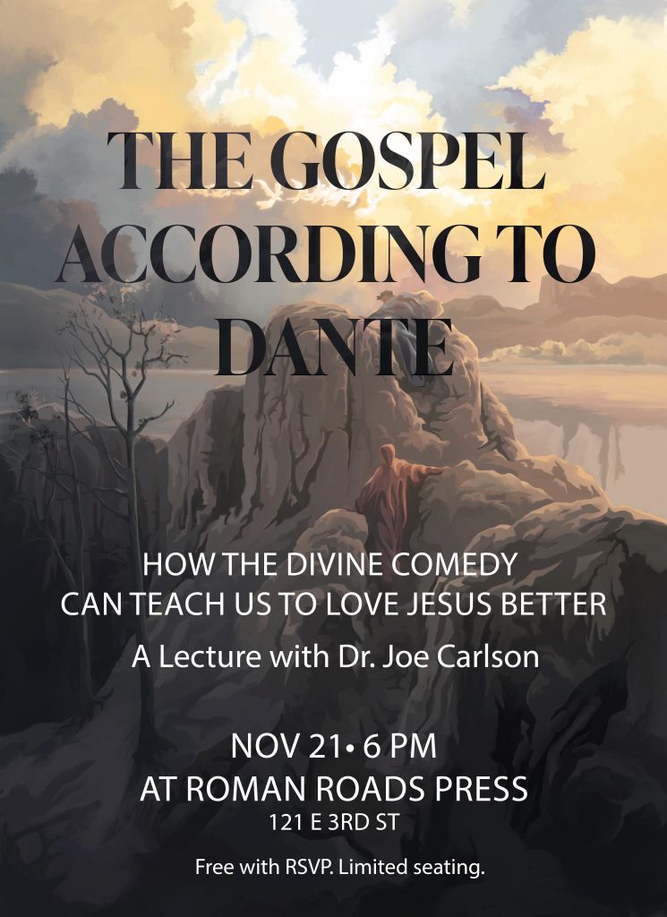 Join us for evening of literature as Dr Joe Carlson shares his passion for Dante’s Divine Comedy, walking through selections from each of the three parts of the poem (Inferno, Purgatorio, and Paradiso), and highlights how the journey of the pilgrim out of the dark wood of his own sinful unbelief toward the beauty and majesty of Jesus mirrors our own.